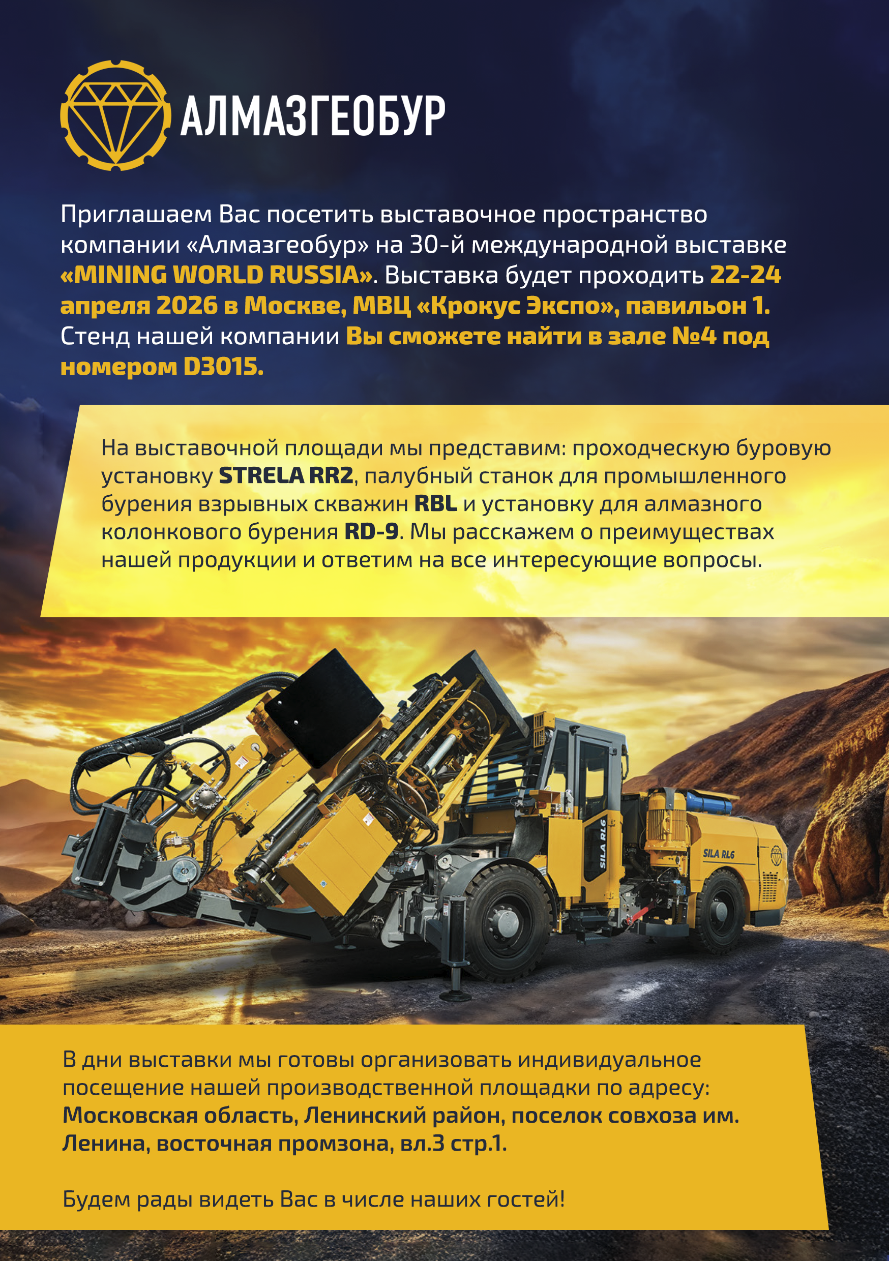 Приглашение на выставочное пространство компании ООО "Алмазгеобур"